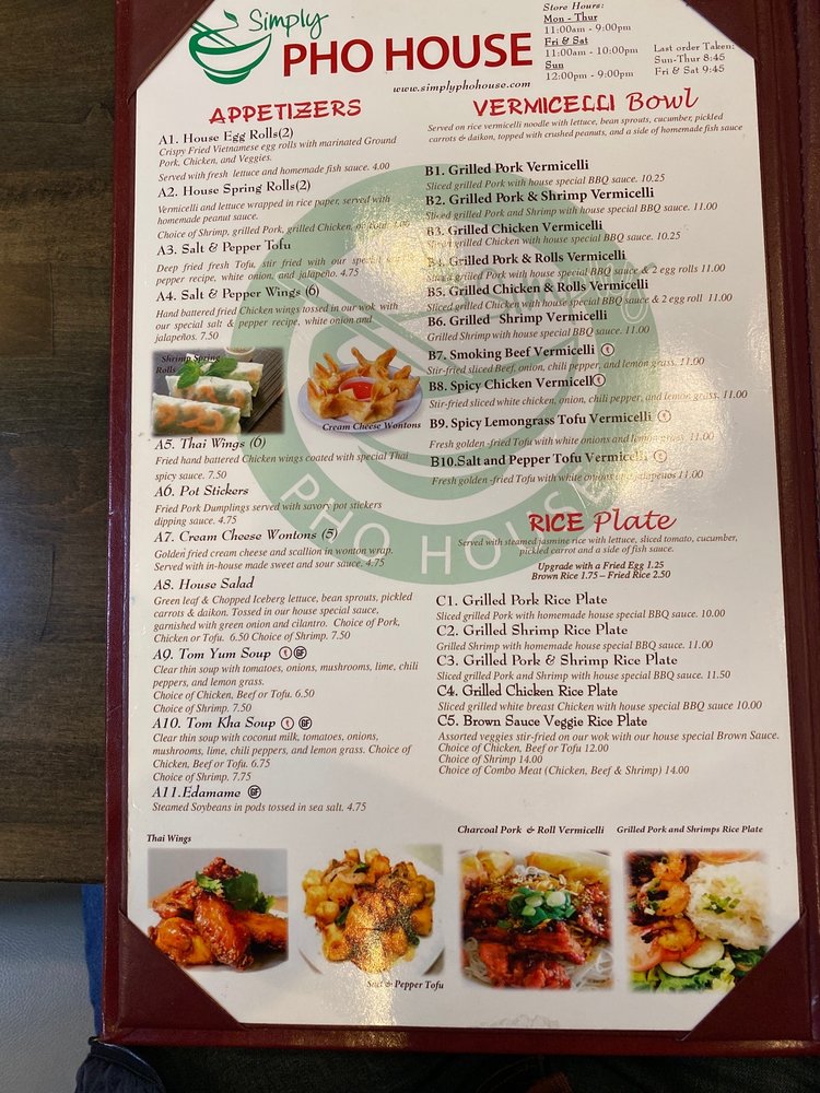 Simply Pho House offers a diverse menu of Asian fusion and Vietnamese dishes, including flavorful appetizers like House Egg Rolls and House Spring Rolls. Their Vermicelli Bun and Rice Com options feature various combinations of grilled meats and tofu, each bursting with delicious flavors. Customers rave about the quick service, friendly staff, and the overall quality of the food. The restaurant's clean and modern ambiance adds to the dining experience, making it a great spot for both casual lunches and dinner outings. Whether you're a fan of pho soup or looking to try something new, Simply Pho House is a must-visit for those craving authentic Asian cuisine. With positive reviews emphasizing the quality of the dishes and attentive service, this restaurant is sure to leave a lasting impression on its patrons.