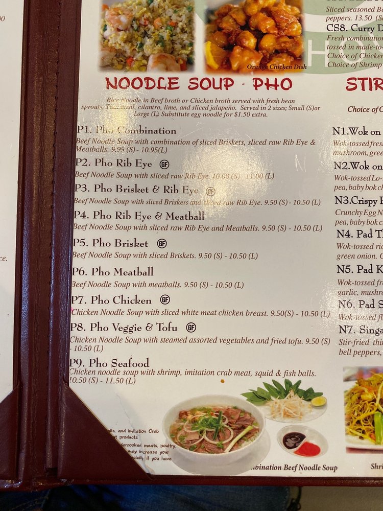 Rice noodle in beef or chicken broth. Choice of chicken, beef, tofu, or veggie